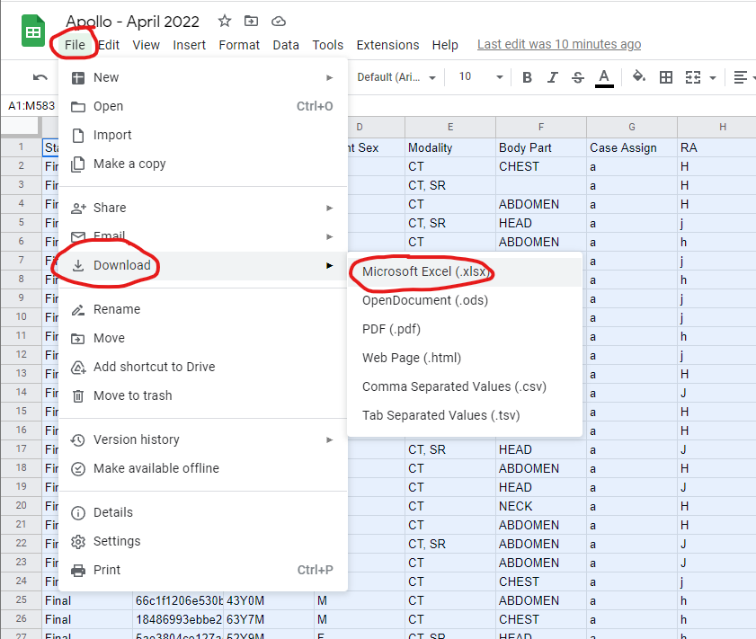 Step 6. Open the file. Click "File"- "Download" - "Microsoft Excel"