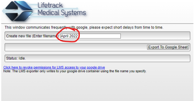 Step 3. Type in a file name. ex: April 2022. Then click "Export to Google Sheet".