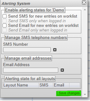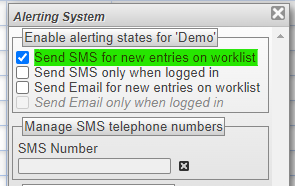You have the option to receive an SMS whenever a new entry is added to the worklist even if you're not logged on, or to receive a message when a new entry is added only when you are logged on to the system