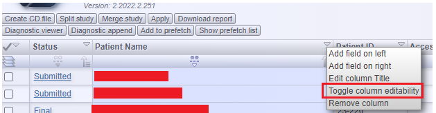 Step 2: Select the "Toggle Column Editability" option to make the field editable