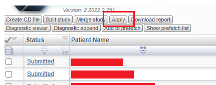 Step 4: Once the row is blinking, click the apply button at the top of your worklist to save the changes.